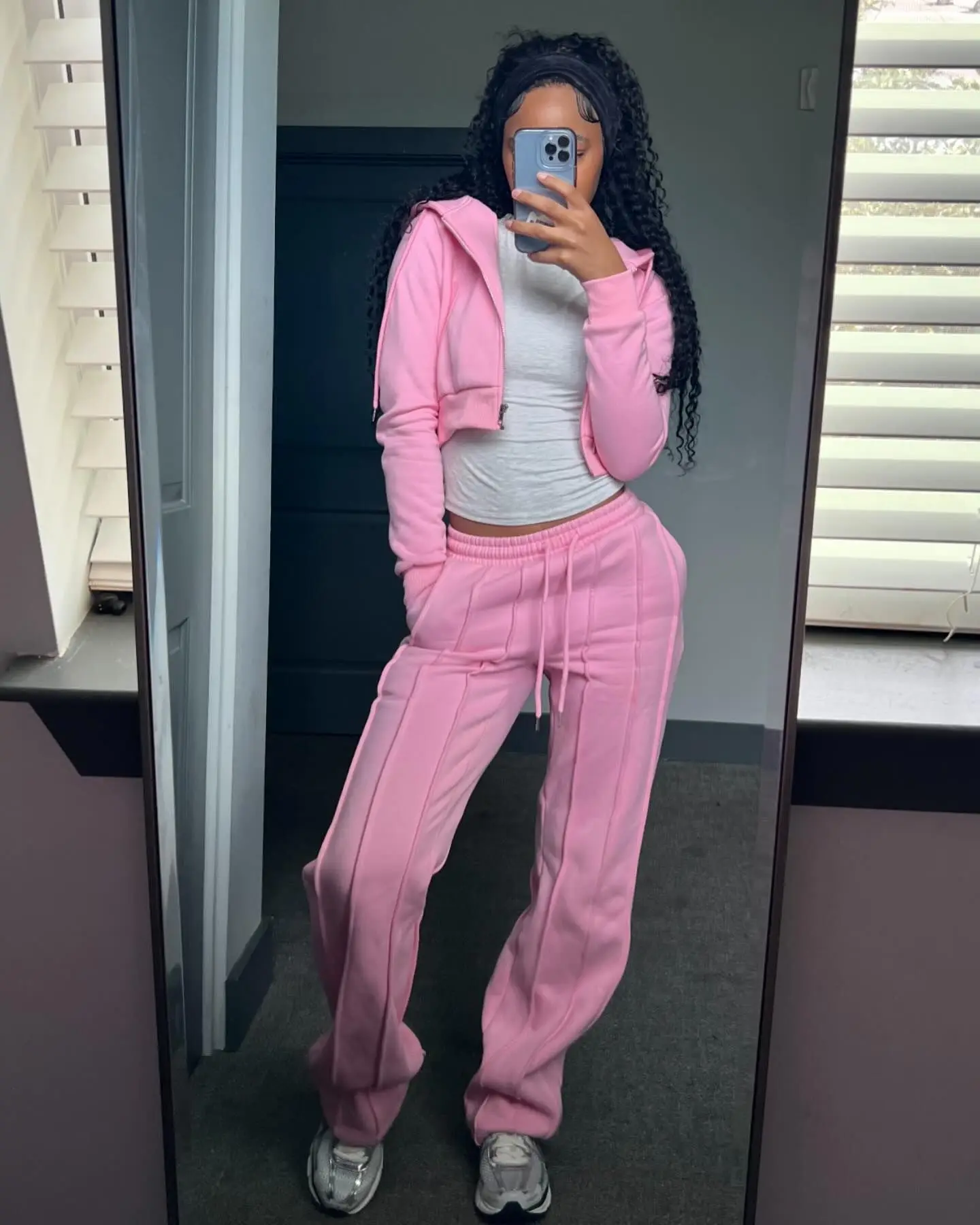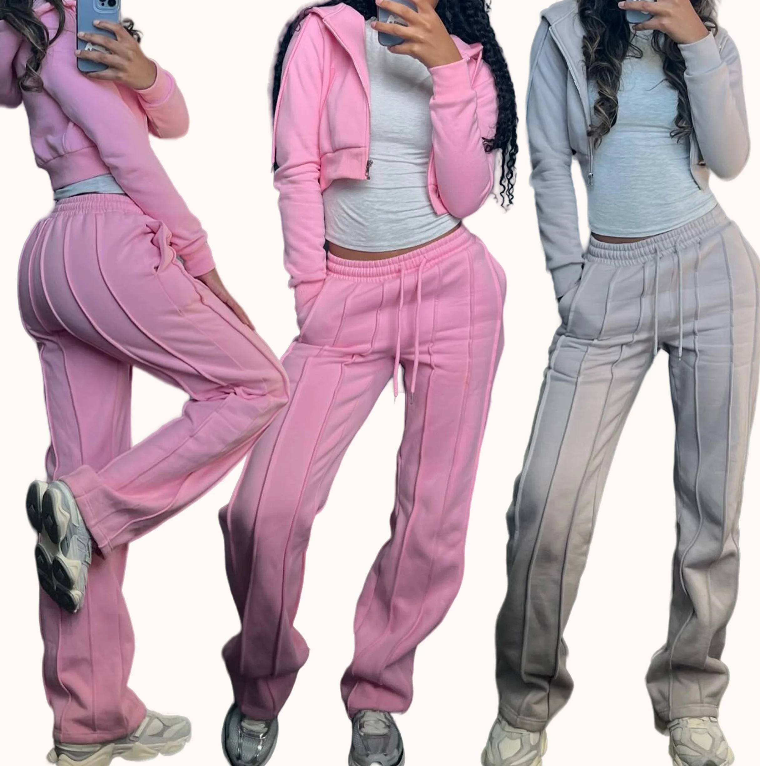 Huili Custom logo New Trending Fashionable Tracksuit 100% Cotton French Terry Crop Top Sweatpants Two Piece Set Women Hoodie Set
